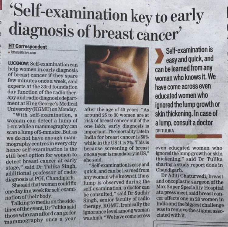 Self Examination key to Early Diagnosis of Breast Cancer