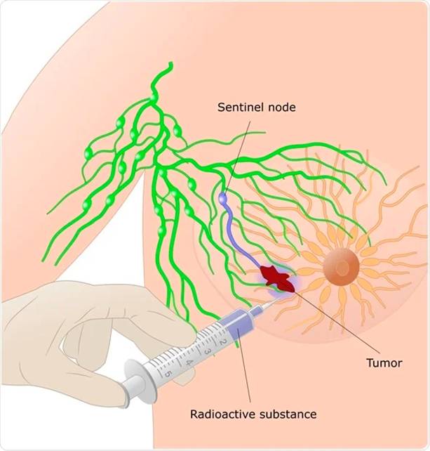 In this technique, 2 dyes are used to select the first draining nodes which are then removed and sent for rapid testing called frozen section. The decision to remove further lymph nodes depend on whether cancer has involved the sentinel lymph node or not. This helps us in improving quality of life of our patients without compromising their oncological safety.